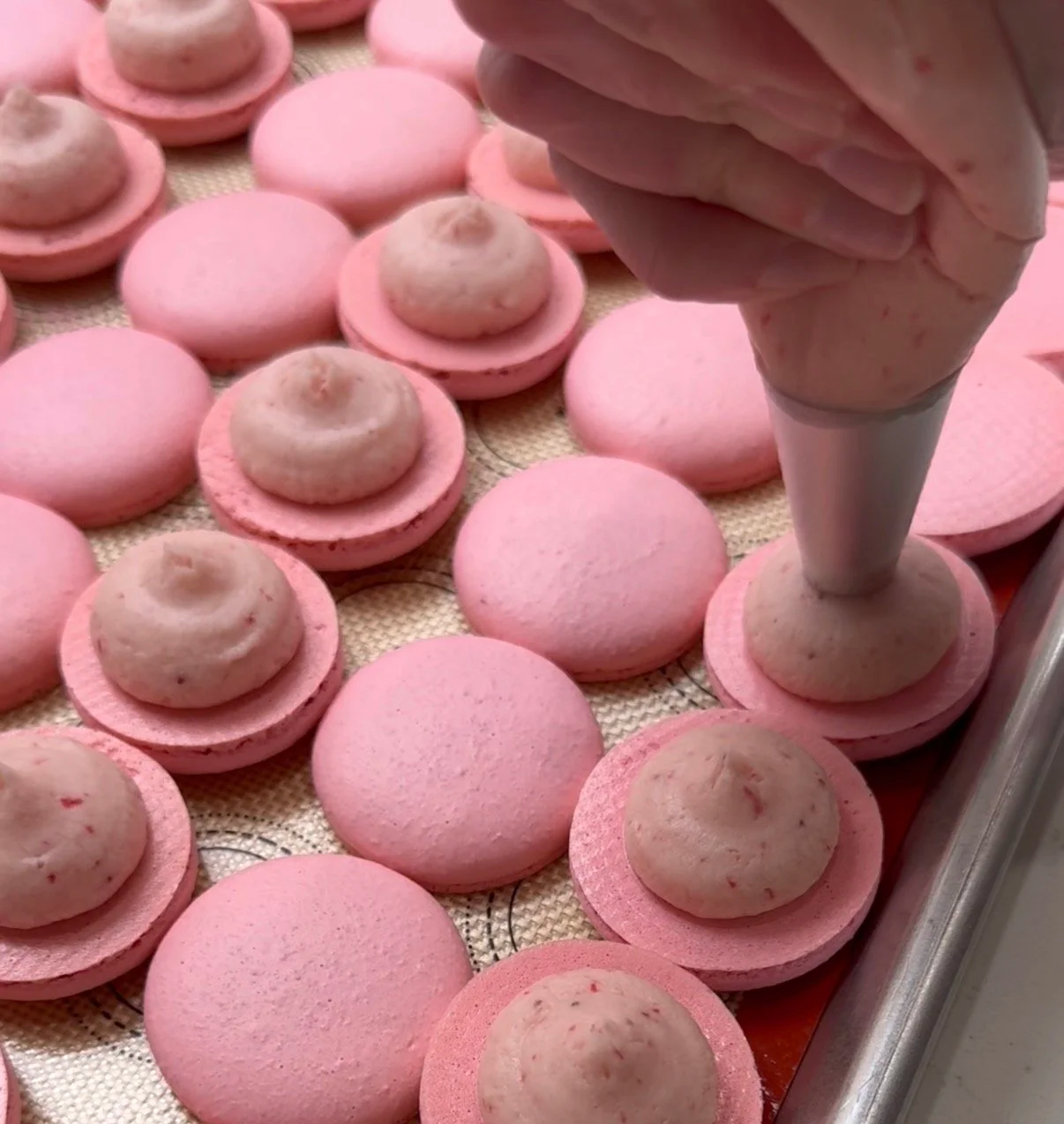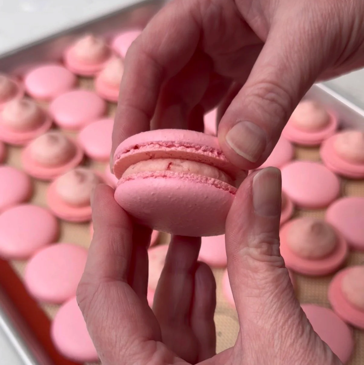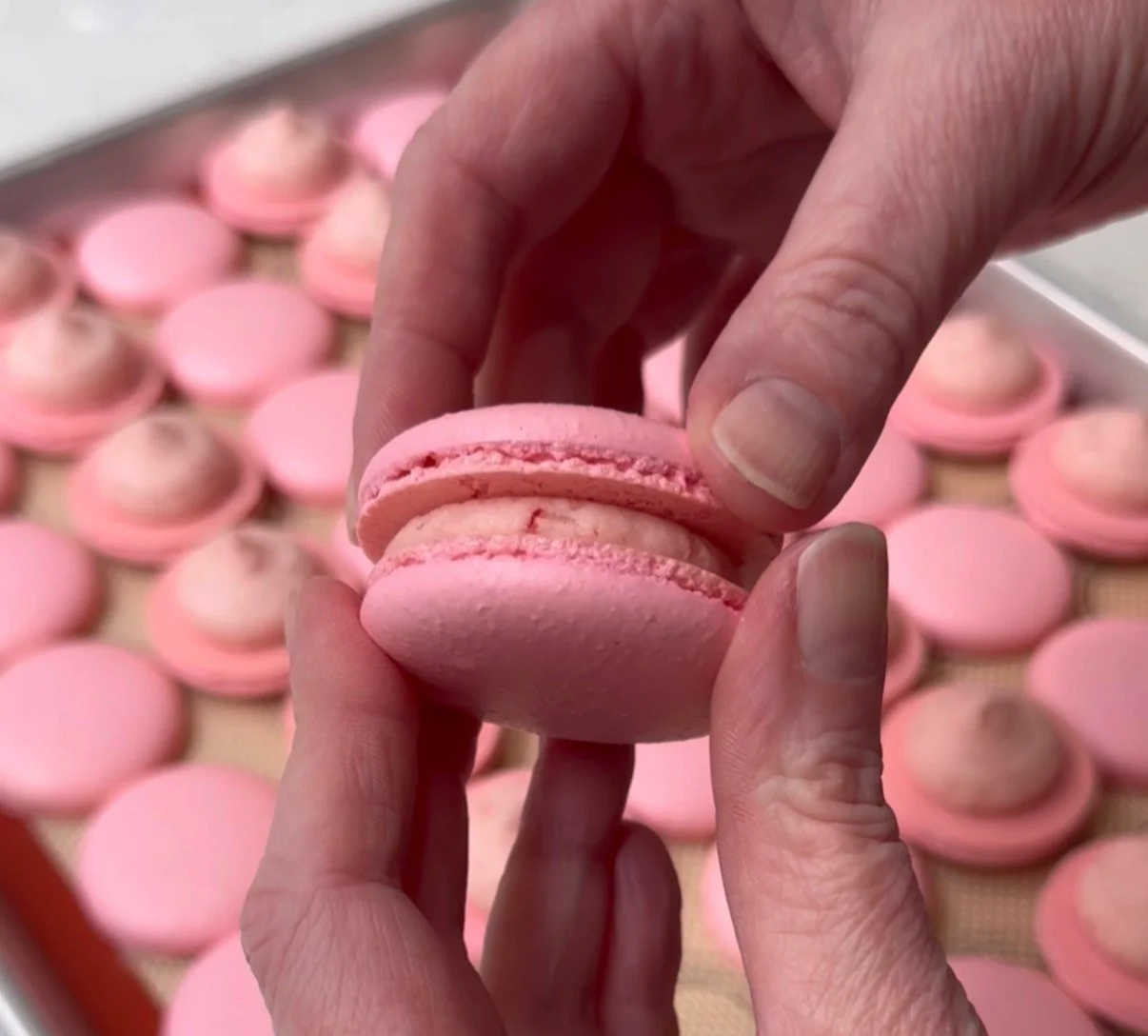 Macarons can be intimidating, but with the right technique I truly believe anyone can do it! This is my basic French macaron recipe and I have a video tutorial posted to all of my socials that you might find helpful.