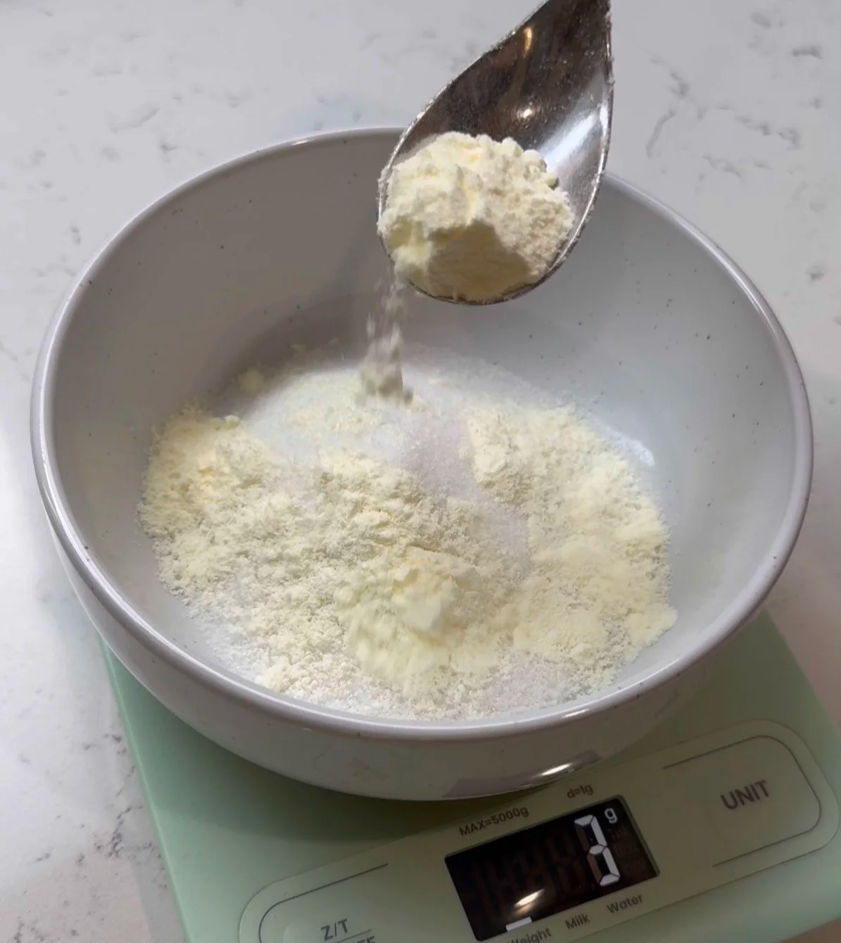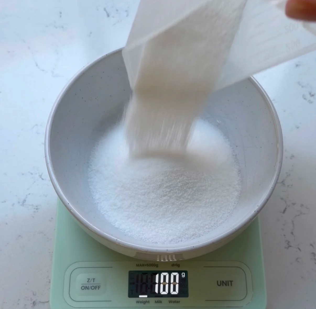- Weigh your ingredients with a kitchen scale. Separate your eggs and let egg whites sit at room temperature for 15 minutes. Weigh the granulated sugar and combine with egg white powder (if using).
